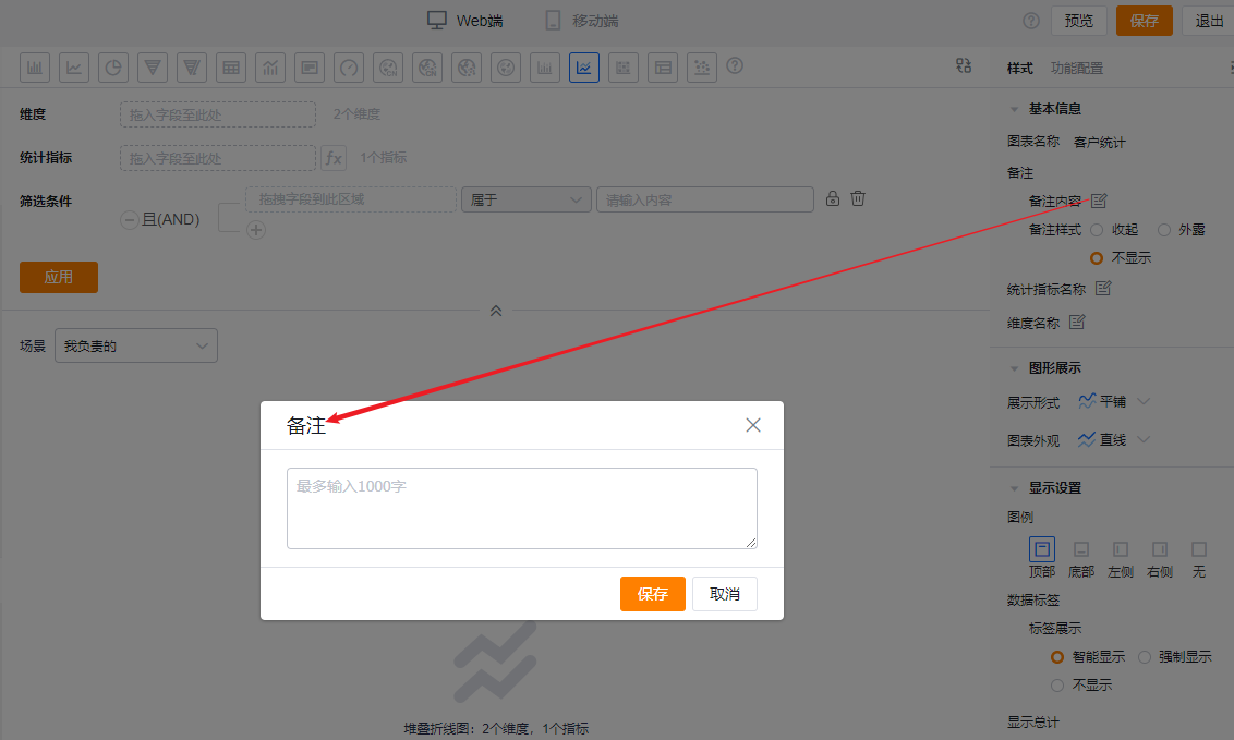 - Note content: Add notes for the chart to help viewers understand the data and intent.