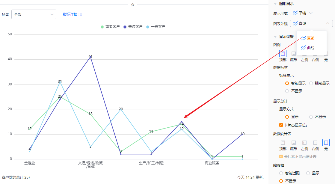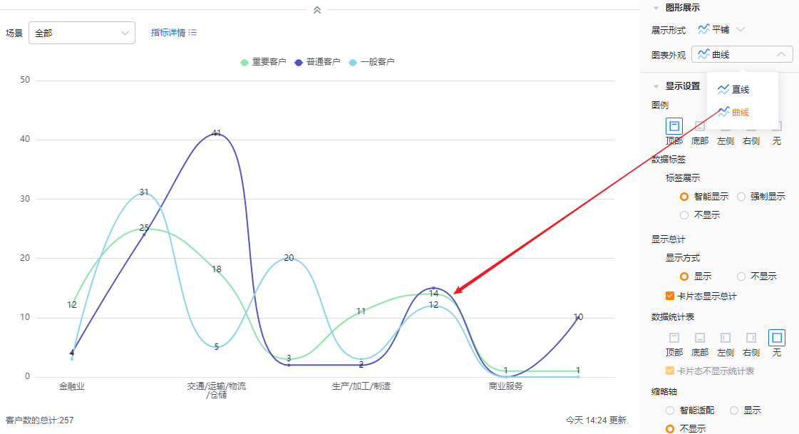- Chart appearance: Default is straight lines; you can switch to smooth curves.