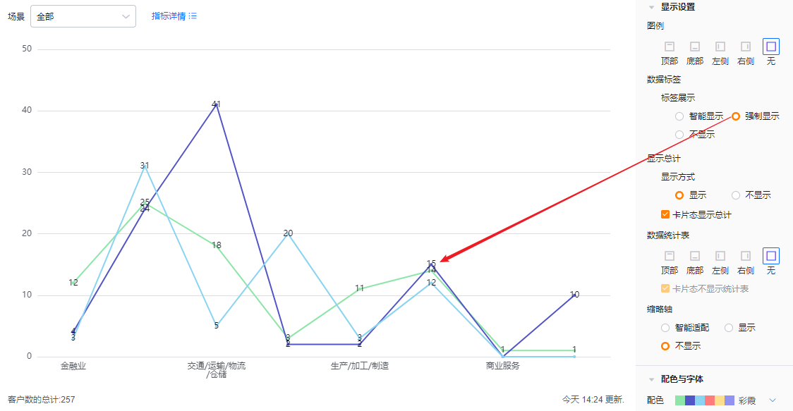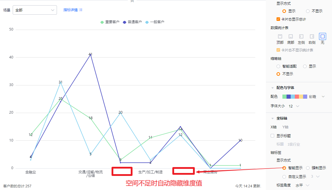 - Force show: Displays all labels; may overlap or stack when values are close.