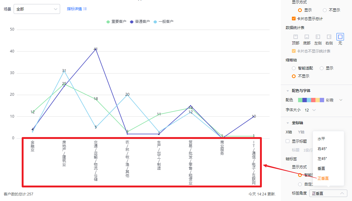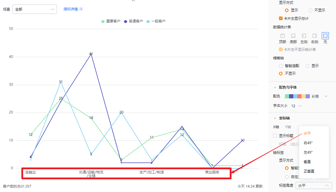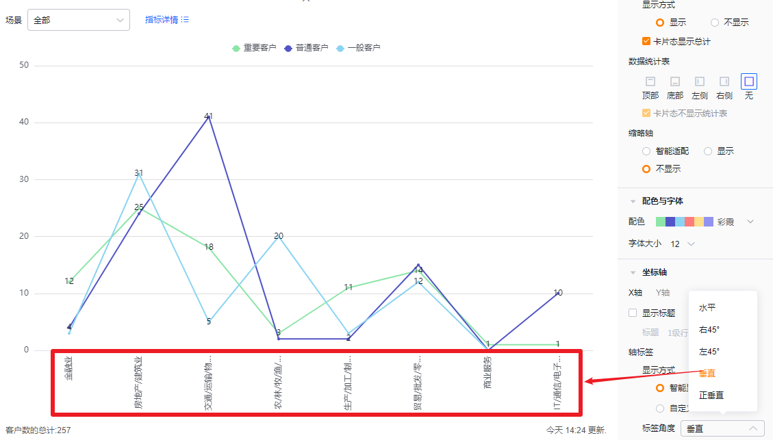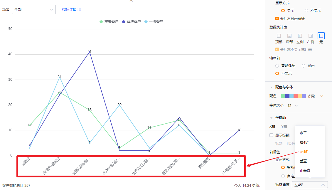 </img>- Label angle: Default horizontal; options: Right 45°, Left 45°, Vertical, Upright Vertical.