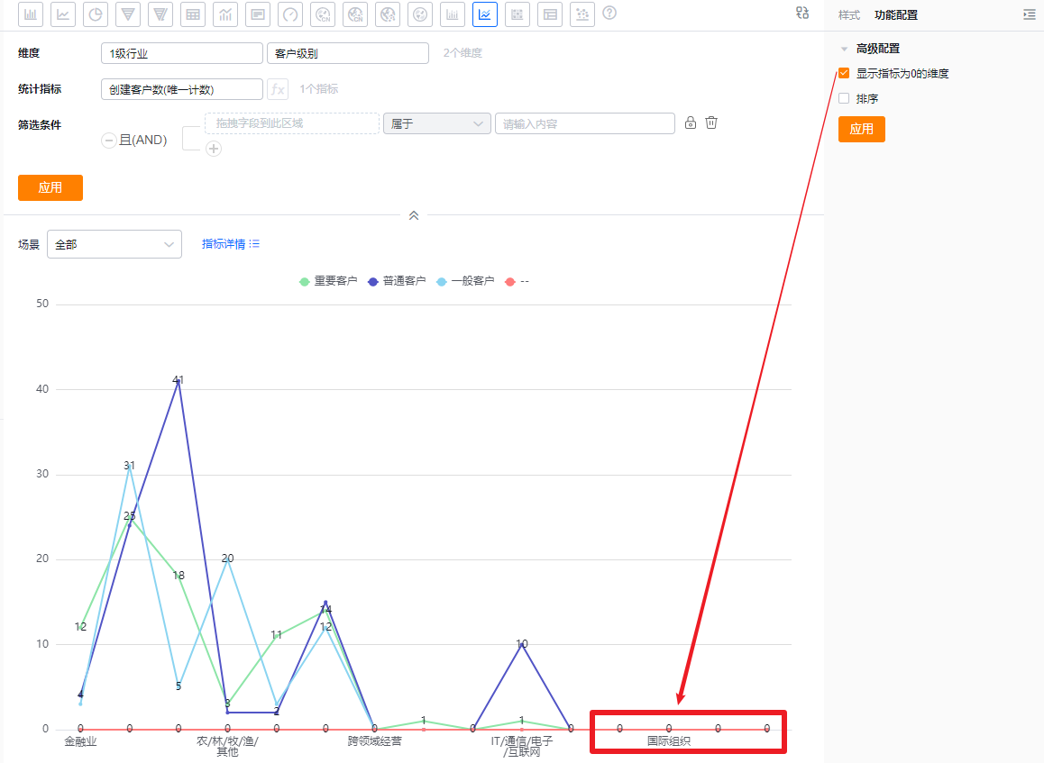 - Show dimensions with zero metric value: Unchecked by default. Check to include dimension values whose metric equals 0.