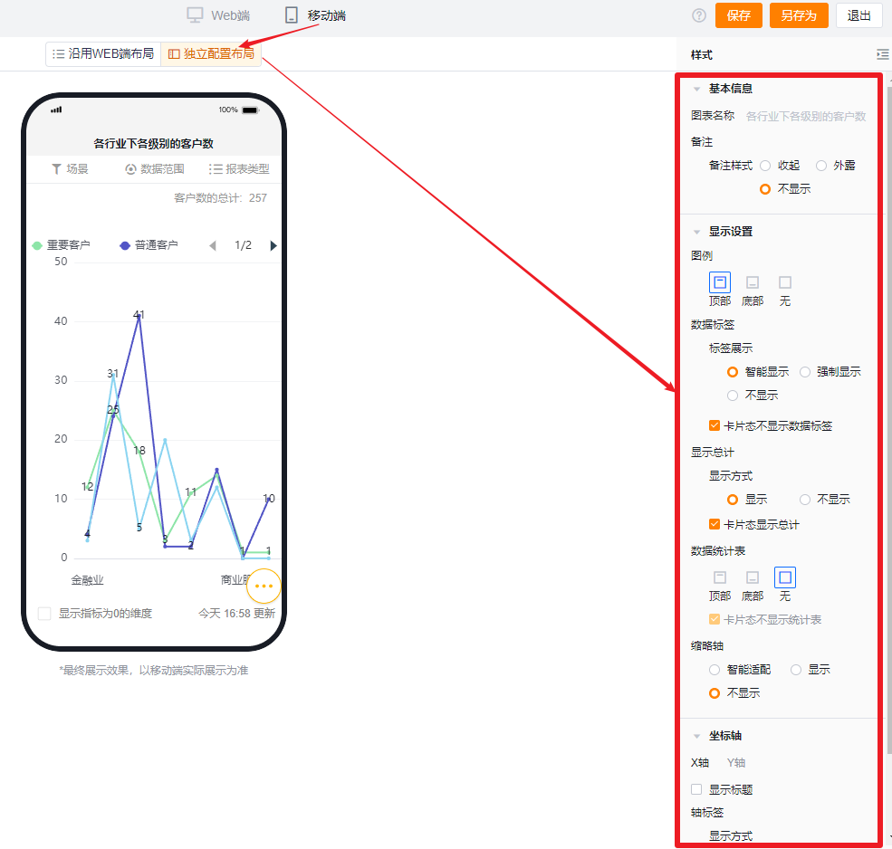 - By default, mobile shows the Web-selected settings but you can further adjust for better mobile display.
