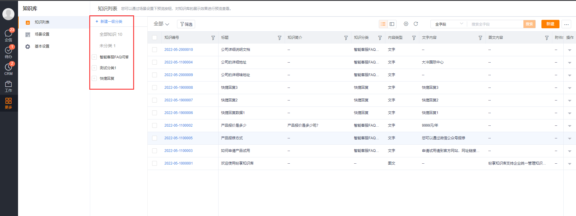 - Service engineer app: Enterprise service engineers can use the knowledge base application in the ShareCRM app to view this type of knowledge document.