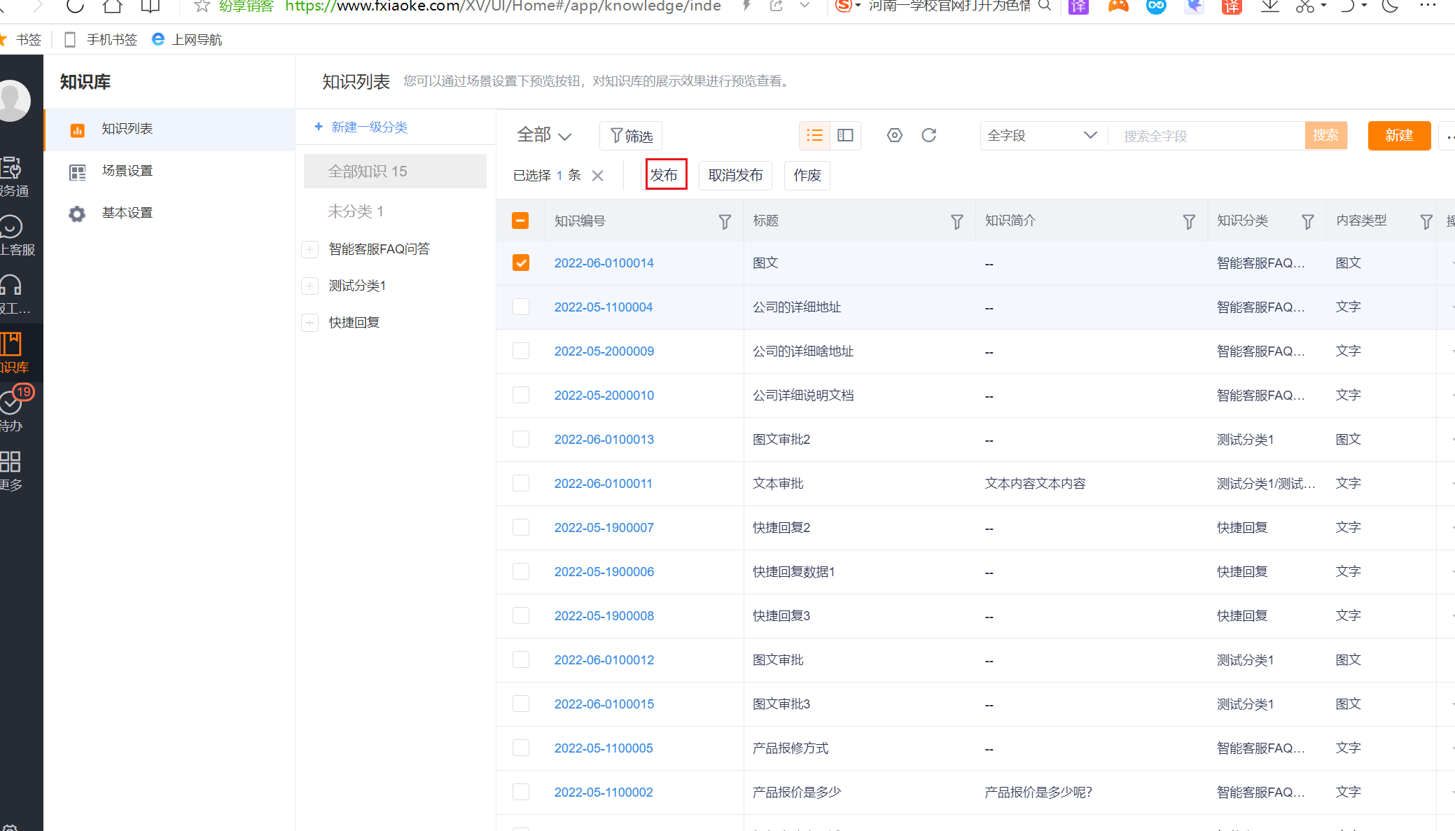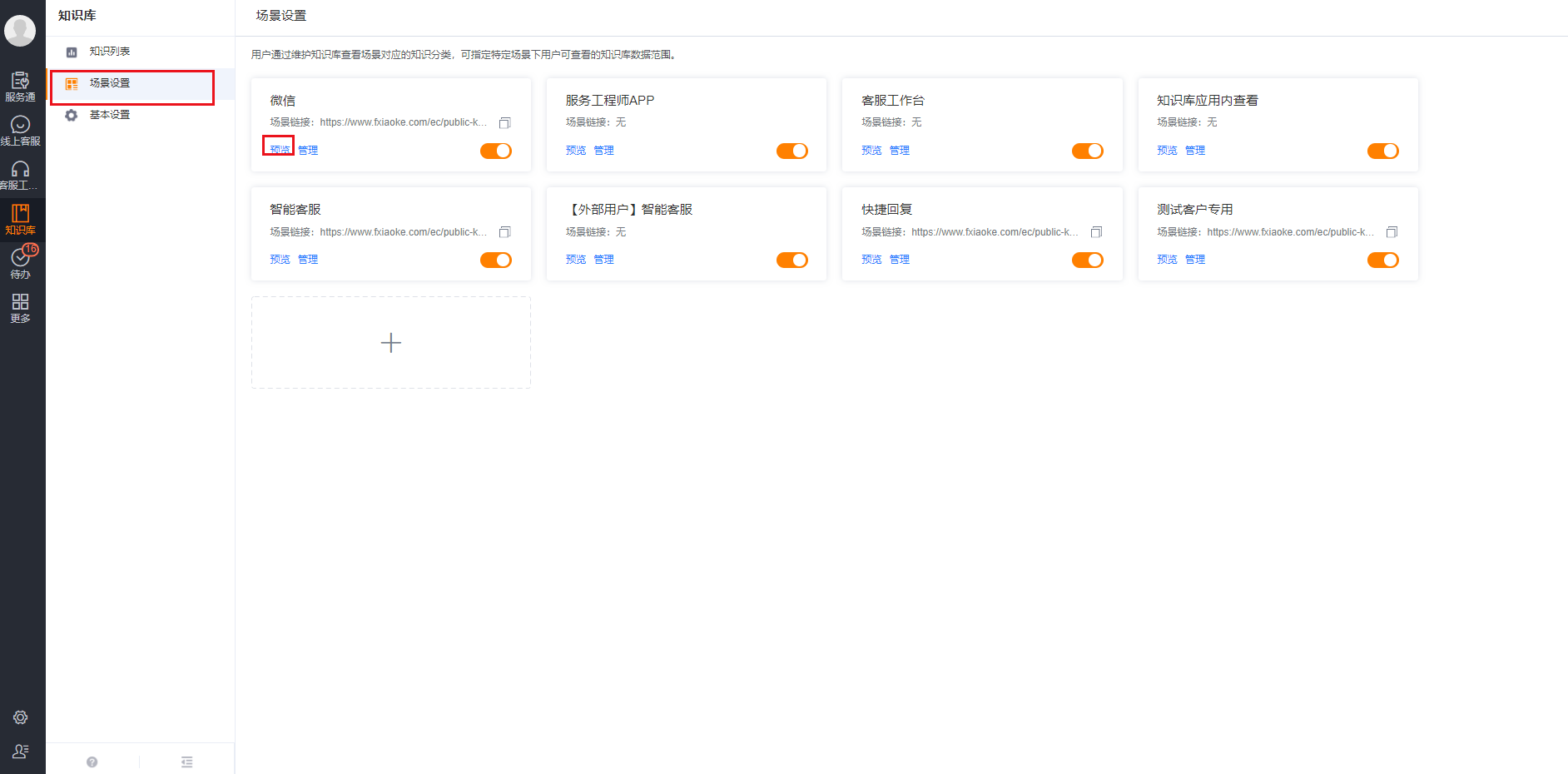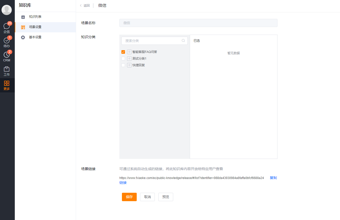 After the administrator maintains the knowledge repository data, he can preview the knowledge repository according to the scene. The specific path is as follows: Knowledge Repository--->Scene Settings--->Preview