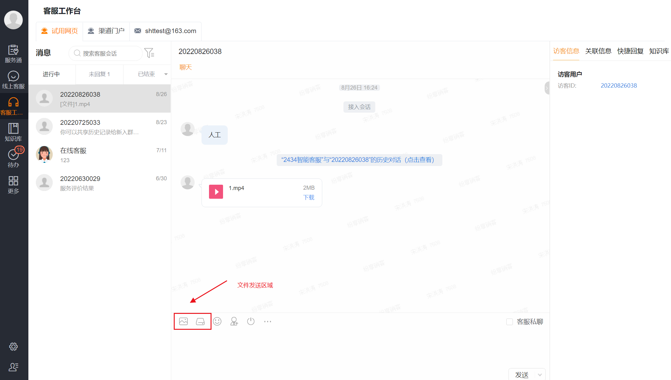 In addition to replying text messages to acconts, customer service staff can also quickly send the company's netdisk files, images, videos and other information to accounts through the customer service workbench.