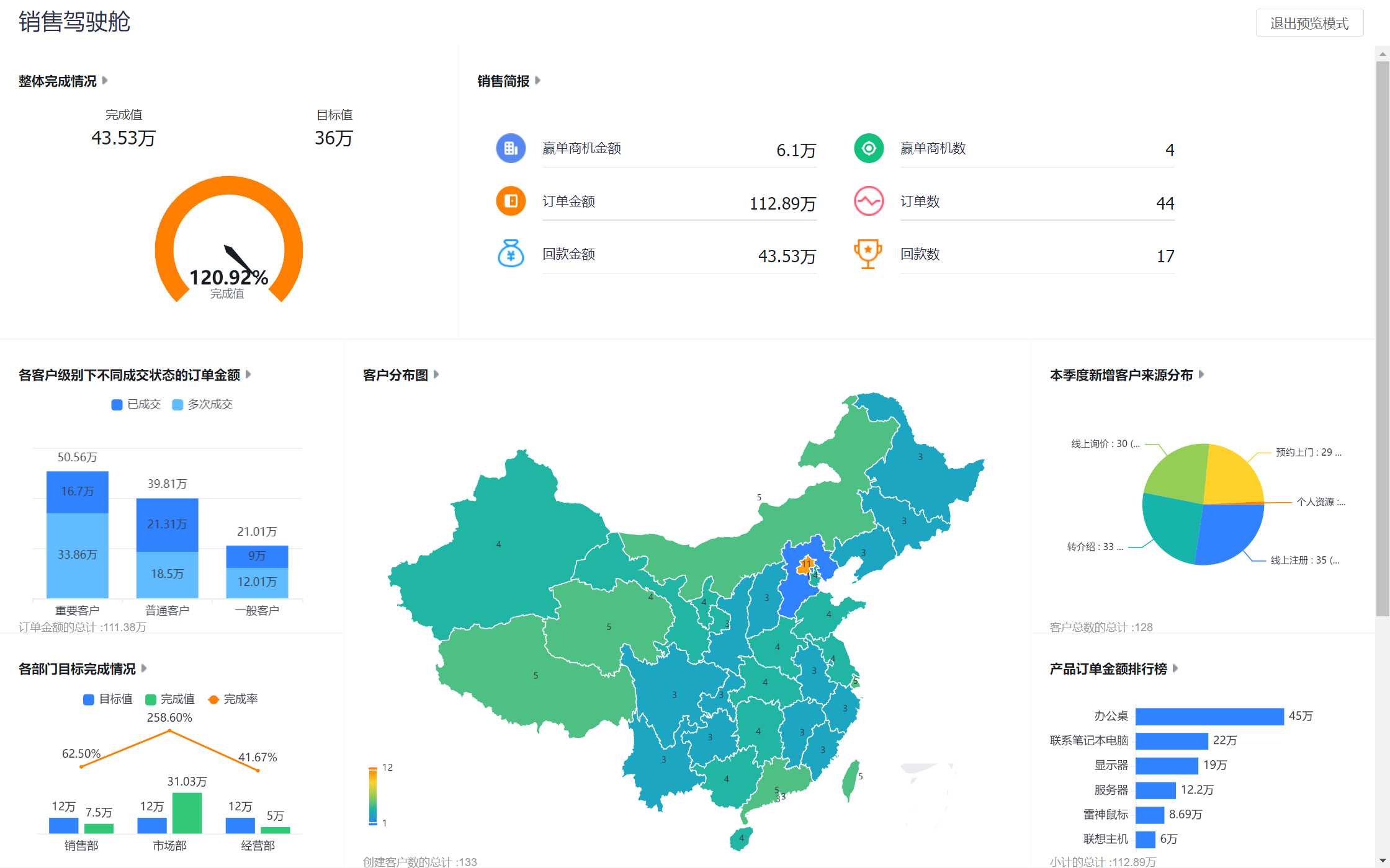 The data dashboard is a data center that provides "one-stop" decision support for enterprise management. Based on the capabilities of BI reports and statistical charts, it summarizes key indicators of enterprise operations and intuitively monitors enterprise operations. The data cockpit can provide enterprises with high-value, personalized real-time data display forms. We preset commonly used statistical charts and more detailed index data for users. Users can connect the large screen to reflect the operation status inside and outside the enterprise in real time, provide powerful data support for enterprise decision-making, and upgrade enterprise management decision-making to a new level.