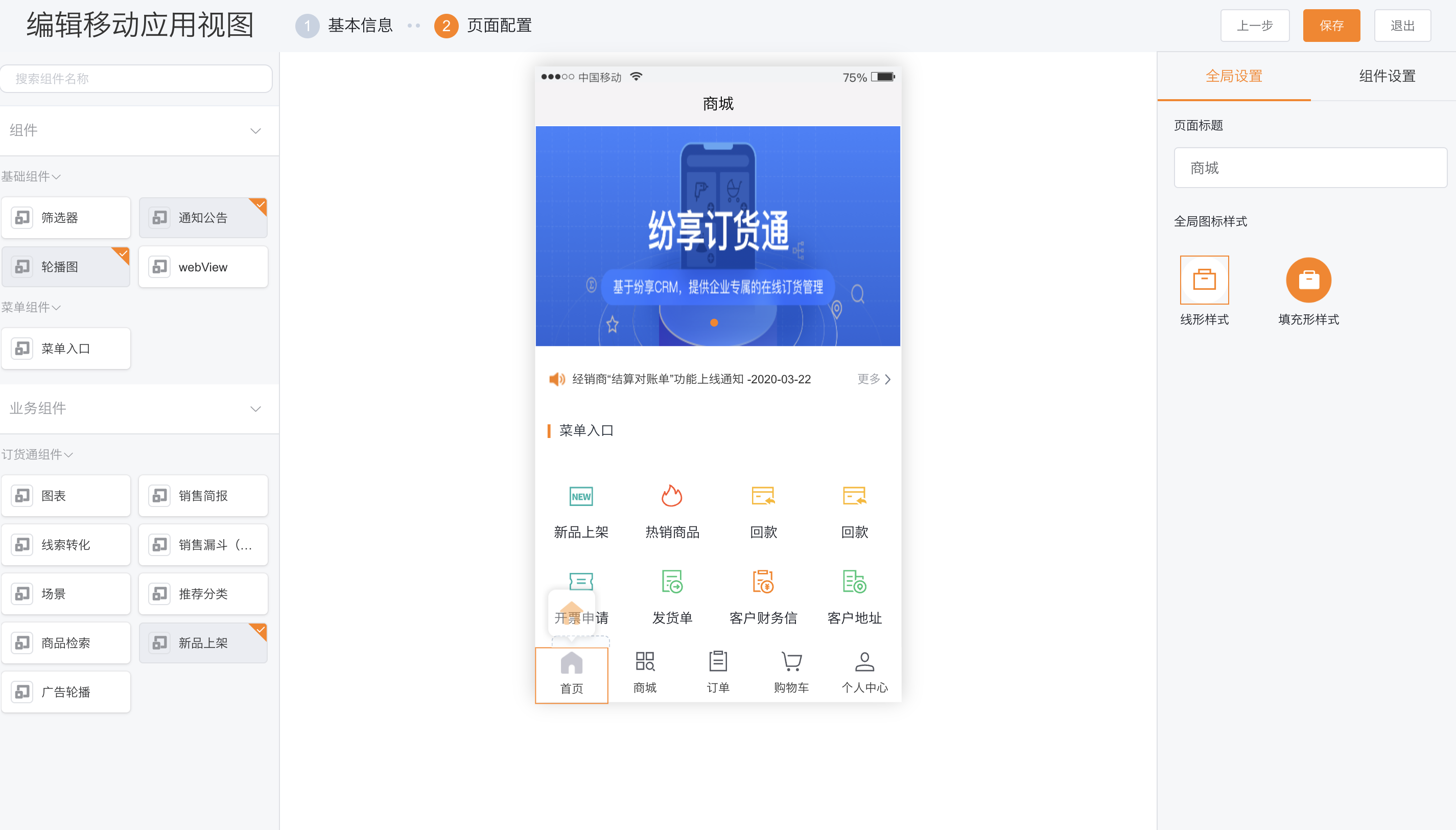 The homepage configuration of the mobile terminal is the same as that of the webpage terminal, so I won’t go into details here.