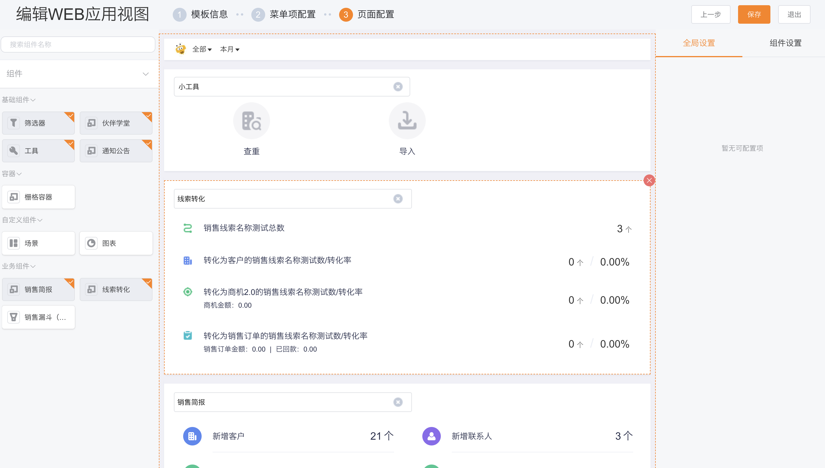 The upstream CRM administrator can set different application homepages for the downstream personnel with different roles in the agent pass, and realize the visibility control of the charts by the personnel of different roles by adding different charts on the homepage.