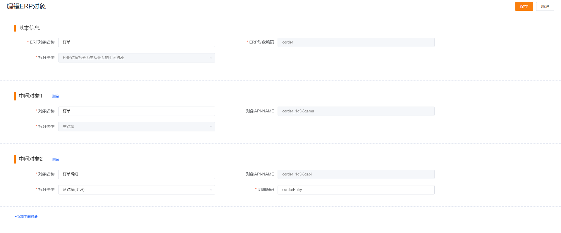 If the object is only the main object: please select the ERP object without splitting, it is an independent intermediate object