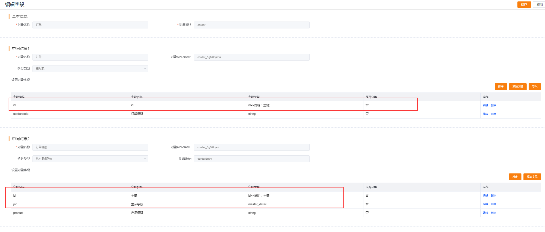 New field: The primary key field must be specified in the object field list, and the primary and secondary fields must also be specified in the detail field list. Used to identify which master object the current slave object belongs to.