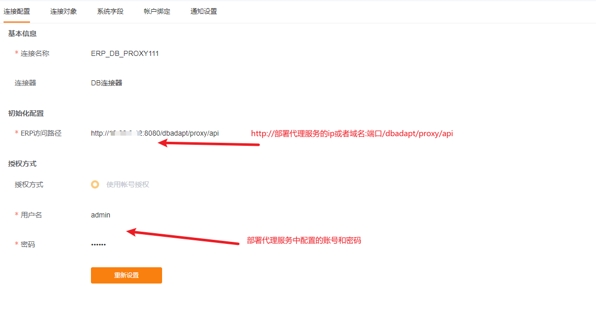 ERP Service Path: fill in the server basic path: http://ip: the value of server.servlet.context-path in port/start.bat/dbadapt/proxy /api