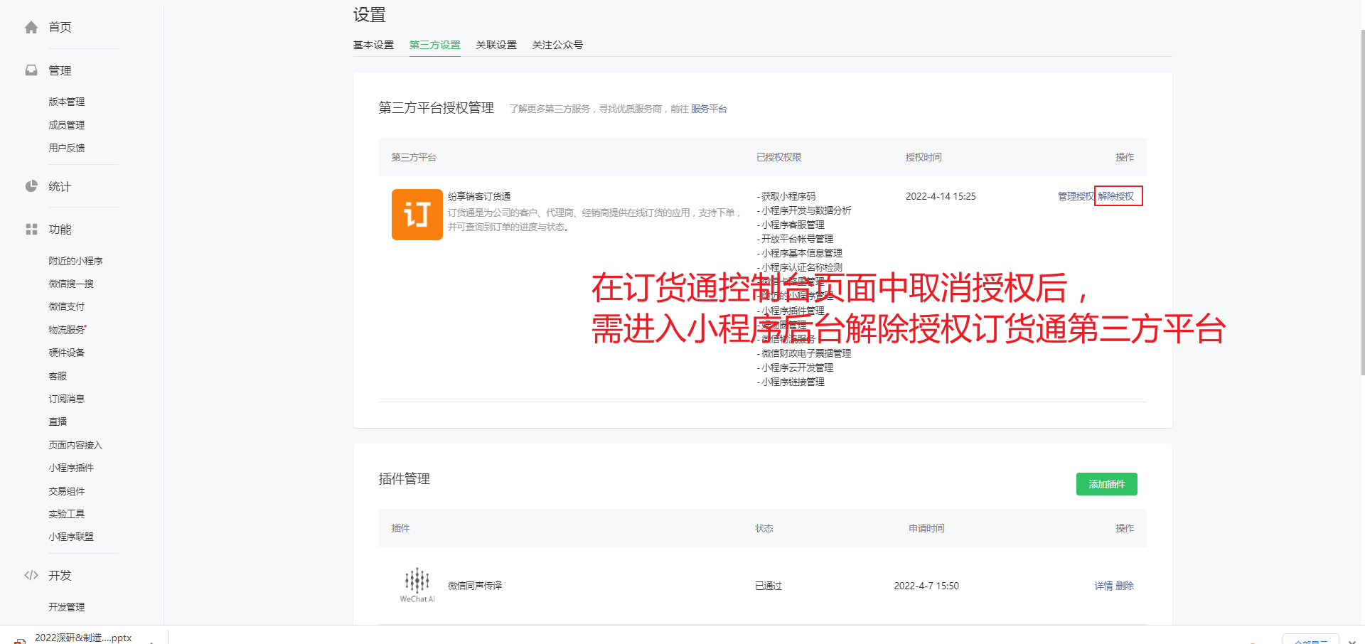 Complete deauthorization steps: 1. Cancel the authorization in the Dinghutong console page;2, enter the WeChat official mini program background to deauthorize the third party of Dinghutong Platform: